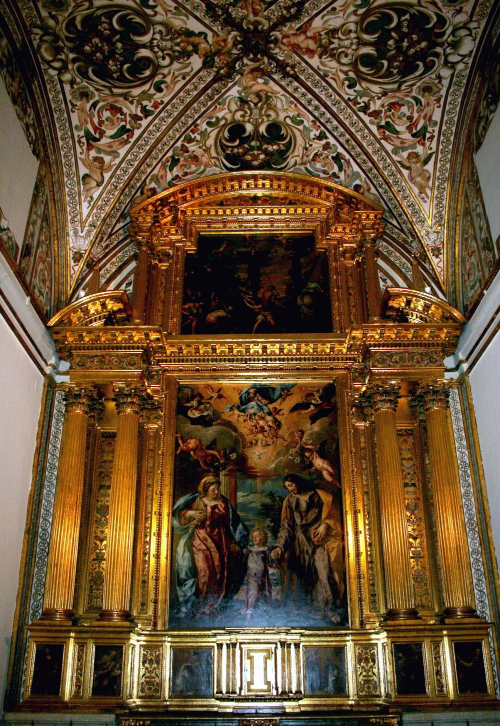 Además de el gran Retablo Mayor, en el monasterio de San Lorenzo, por voluntad de Felipe II, se han de situar altares dedicados a Santos y sus Reliquias. Este hecho provocará que se planteen para este objetivo grandes lienzos con la representación de parejas de santos, que van acompañados de un pequeño marco, al modo de las pallas de altar italianas. En los recintos pequeños, como las capillas de los conventos, de Madrid este segundo modelo escurialense será reinterpretado con retablos sencillos, donde se reduce el esquema arquitectónico a un retablo de un sólo cuerpo con ático y predela, y éste a su vez divido en tres calles, mucho más ancha la central que es ocupada por un gran lienzo.