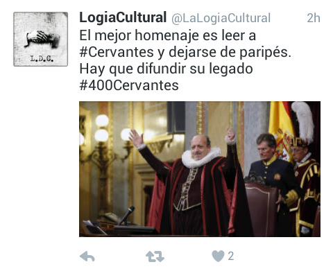 Como he leído por redes sociales estos días, el mejor homenaje a la obra de Cervantes es leerlo, pero no memeces como las lecturas continuadas, que son sólo reclamo fácil y poco lucido, parece que trataramos a los textos de Cervantes como si de un libro sagrado se tratara y pudieramos abrir y leer por cualquier parte, nos dará respuestas a las inquietudes de nuestra alma. No es así, una novela hay que leerla pausadamente y disfrutando, no «pillar» un fragmento al azar y descontextualizado.