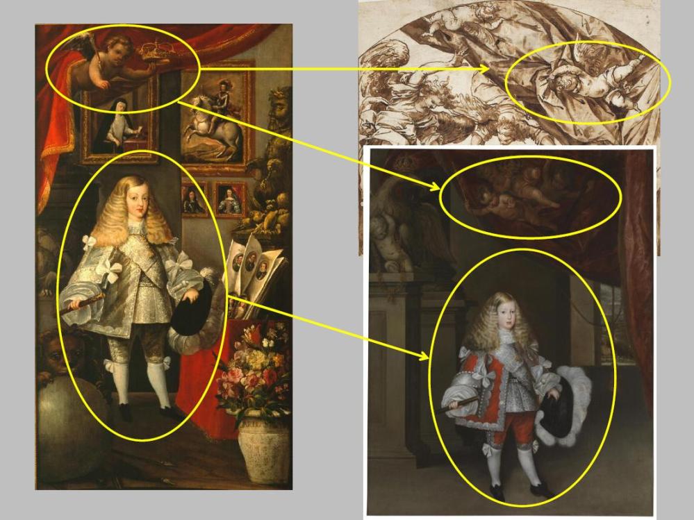 Bien es cierto que éste aporta una riqueza iconográfica mayor, sobre todo más simbólica al aparecer retratados en el cuadro toda la parentela que viene a avalar la sucesión de la corona de los Habsburgo y sobre todo la regencia de la Reina-viuda.