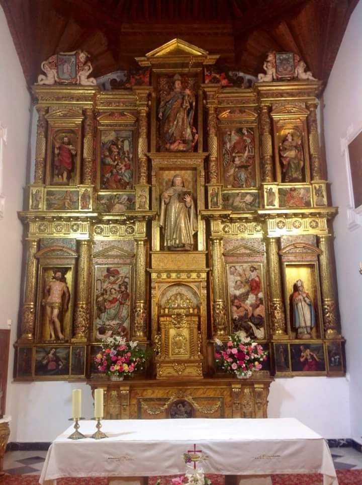 El retablo responde a un modelo maniersita, consta de dos cuerpos y cinco calles, pero la calle central no va alineada con los cuerpos laterales, sino que constaría de tres cuerpos: sagrario, hornacina para Santa Sofía y hornacina con un remate en frontón triangular, a la manera de ático, para el santo fundador, San Norberto. Esta calle central no lleva ordenes arquitectónicos. En las calles laterales, podemos distinguir el uso de un órden dórico-toscano para el cuerpo bajo, con el fuste con la tercia inferior decorada con elementos vegetales y el resto con acanaladuras. Para los huecos de talla se disponen unas hornacinas a modo de cajón rematadas por frontón circular, mientras que los relieves llevan un frontón triangular, en una clara referencia clasicista. En el cuerpo superior, de orden jónico, las columnas llevan cada tercia decorada de una forma diferente, con elementos vegetales y acanaladuras torsas. Los huecos para las esculturas llevan frontones partidos. Rematan en la parte superior unos grupos de angelotes con los escudos de la orden y el convento.