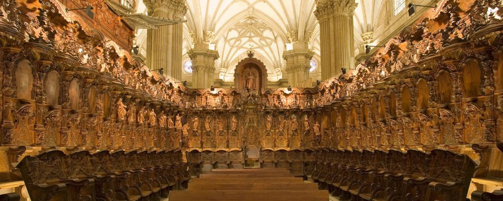 El coro actual de la Catedral de Guadix, el que aparece en la fotografía, es obra contemporánea de Ángel Asenjo Fenoy quien ha repuesto magistralmente las esculturas de Ruiz del Peral destruídas en la guerra civil.