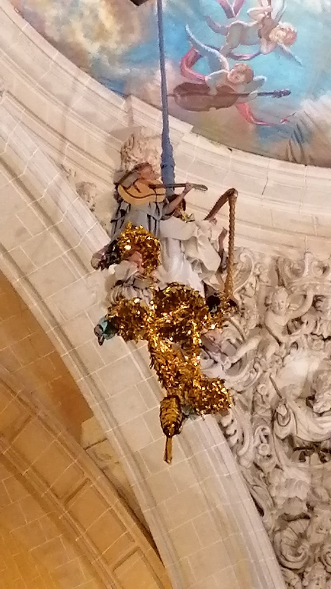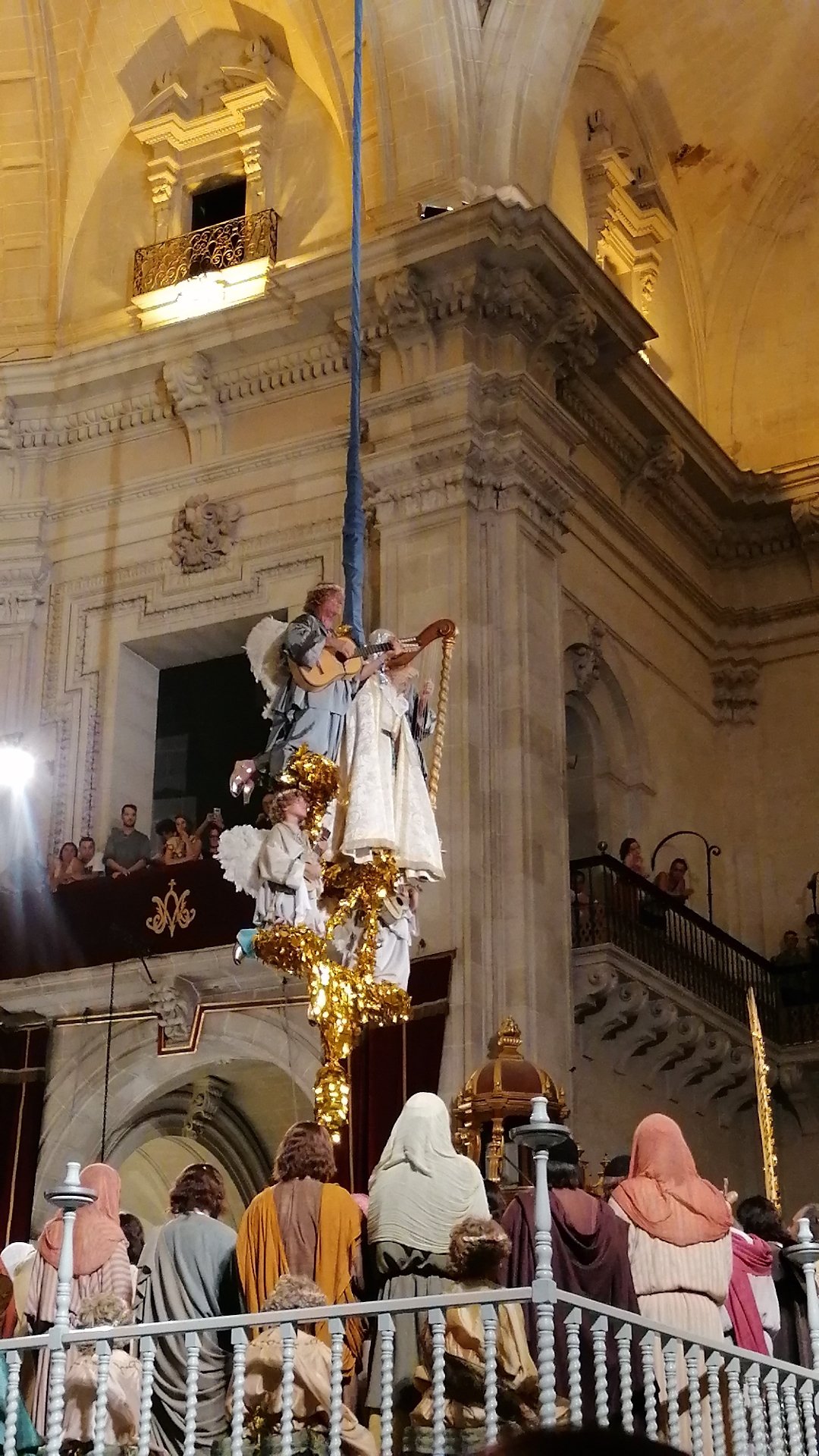 Los ángeles descienden con al alma de María para unirla a su cuerpo. Representación de la Festa (2 acto) del Misteri d’Elx. Fofo @cipripedia.