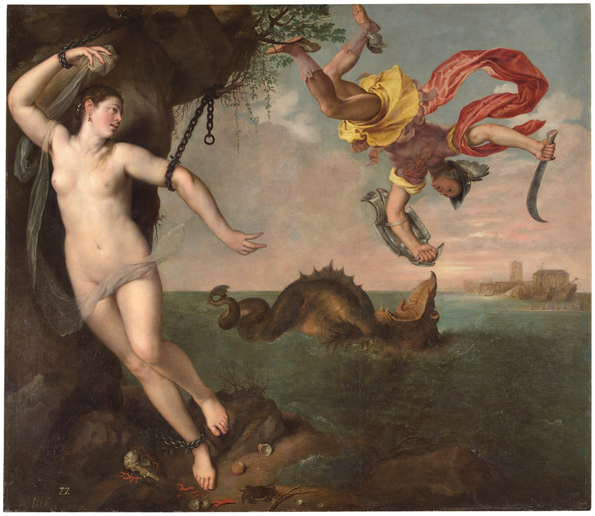 La fascinación por Tiziano hizo que la copia de esta obra que muestra a Andrómeda siendo liberada de un monstruo marino por el héroe griego Perseo, una de las llamadas “poesías”, fuera solicitada repetidas veces en los siglos XVI y XVII por la nobleza española y algunas cortes extranjeras. Este duplicado a tamaño real, de factura ligera y minuciosamente ajustado a la escena, podría ser el encargado por Felipe II para sustituir al original (hoy en Londres), que había regalado a su secretario Antonio Pérez.