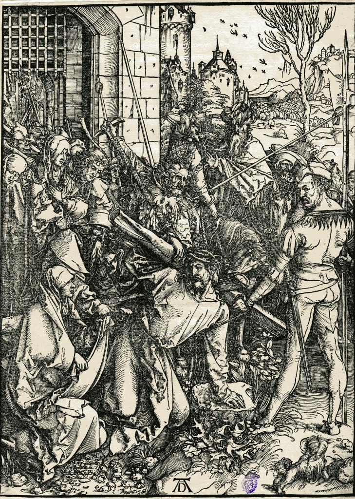 Para la representación del Nazareno o Jesús portando la cruz una de las fuentes más usadas, vuelve a ser la estampa de Durero, sobre todo la que narra el pasaje de la Caída camino del Calvario que sirvió de modelo tanto a pintores, como Rafael o Tiziano, como luego en su tránsito a escultura. Así ocurre también con las imágenes del Calvario de donde procede la iconografía de la Mater Dolorosa como figura aislada o como necesaria de su hijo. De tal forma que la festividad de los Dolores de María también es una importación centroeuropea que llega a la Península Ibérica al final de la Edad Media. Esta festividad era conocida también como Transfixión. El Archiduque Felipe de Habsburgo, futuro rey de Castilla y conocido popularmente como Felipe “el Hermoso”, solicitó y le fue concedida una bula para crear en sus dominios congregaciones de fieles bajo la advocación de María Santísima de los Siete Dolores.