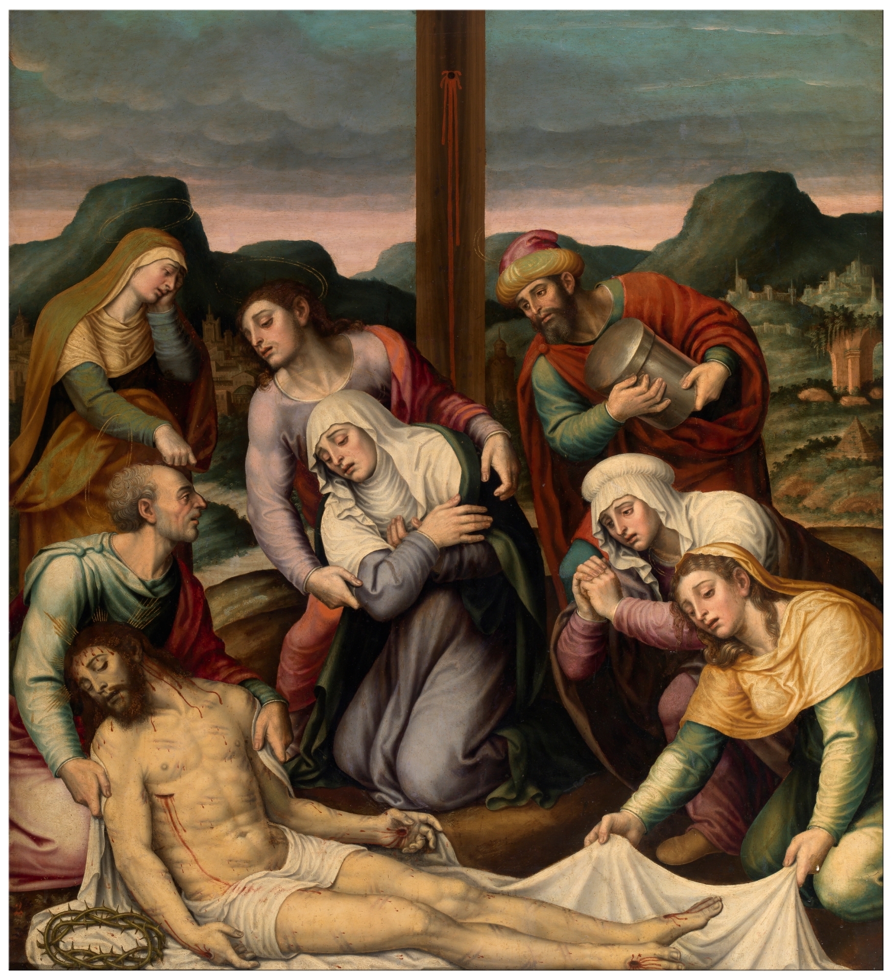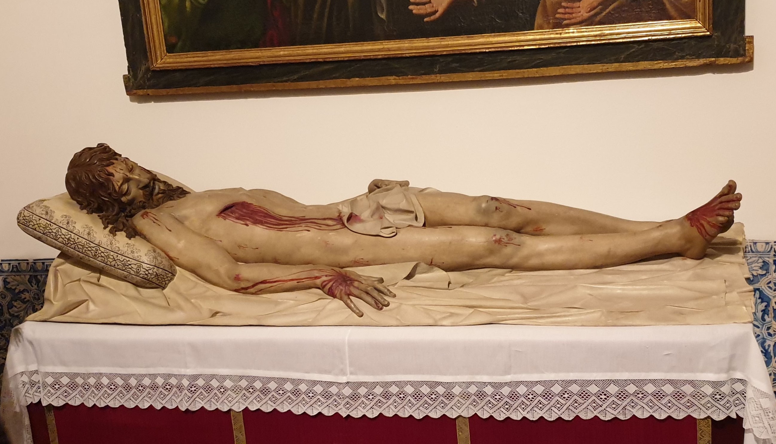 La iconografía del Cristo yacente también hunde sus raíces en la Edad Media, en las representaciones del Descendimiento y de la Piedad o Quinta angustia, el momento en que el cuerpo de Jesús muerto es tomado por su madre.