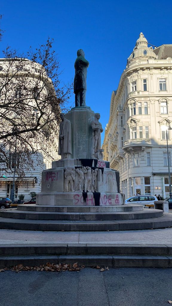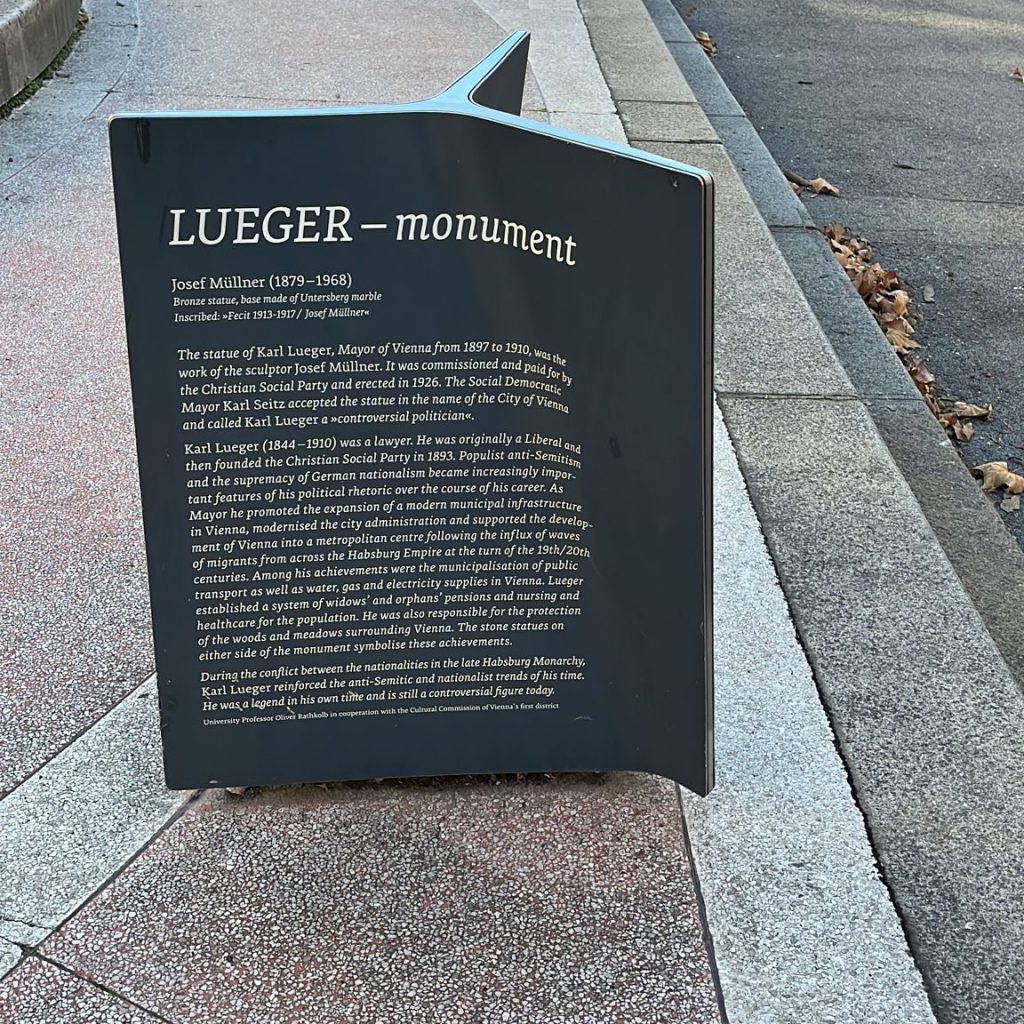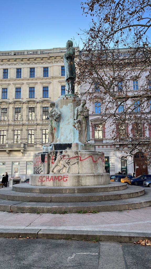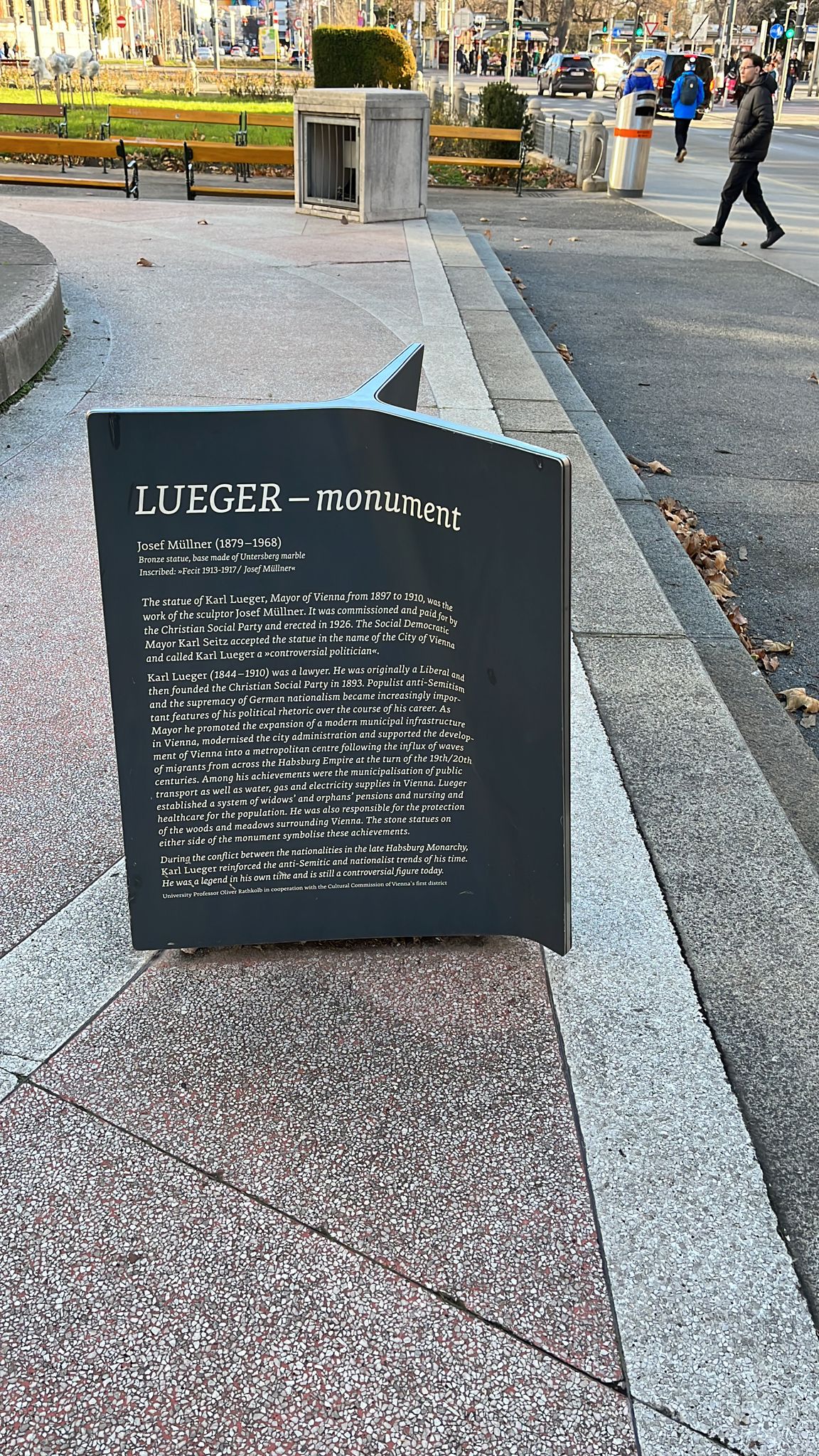 Desde que empecé con el proyecto de hacer una historia de los monumentos públicos, empecé a ver estos con otros ojos, fijándome más, si cave, en ellos, por eso quiero rescatar un caso que llamó mi atención durante mis vacaciones en la ciudad de Viena el verano de 2023. Paseando por el anillo central de la ciudad, el famoso Ringstrasse, nos encontramos con una escultura abiertamente vandalizada, sobre la efigie de bronce de un hombre vestido con traje que denotaba cierta posición social, habían vertido pintura y en el pedestal que combinaba figuras de piedra con relieves, había manchas de pintura e inscripciones en alemán que parecían no decir nada bueno del señor. El efecto era el mismo que los monumentos atacados en la oleada de 2017 en Estados Unidos y algunos otros lugares de Europa y América. El sujeto pasivo de esos ataques resultaba ser Karl Lueger, político austríaco que fue alcalde de Viena entre 1897 y 1910. Durante su mandato se concluyeron parte de las obras del anillo de Viena y él mismo dejó preparado el lugar en el que quería que le erigiesen una estatua. El problema es que en su trayectoria política fue abiertamente antisemita y su figura fue exaltada durante el periodo nazi de Austria. De tal manera que la vandalización de la escultura parece que está admitida por las autoridades vienesas actualmente. Tan impactado me tenía ver un monumento de esa prestancia, en ese estado que apunté esta historia ya pensando en poder contarla aquí.