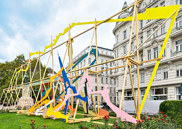 El caso es que la ciudad de Viena consciente del problema de mantener un monumento público a una figura controvertida por sus ideas políticas creó en 2010 un concurso para intervenir en la escultura y poder así resignificarla. El proyecto ganador fue el de Klemens Wihlidal, que propuso inclinar la escultura hacia la derecha 3,5 grados, de tal manera que la viéramos en una posición inestable. De momento no se ha llevado cabo esta intervención que, de seguir adelante, sería una interesante alternativa a los monumentos públicos contradictorios, lo que sí que había ese verano en la plaza, que por cierto tiene el nombre del antiguo alcalde de Viena, una instalación de Nicole Six y Paul Petritsch que consistía en perfiles de monumentos y recuerdos que había en Viena a la figura de Karl Lueger, recortados en colores brillantes y arrumbados en una estructura de madera que incluía además las explicaciones de la figura de Lueger y por qué es tan controvertida hoy en día.