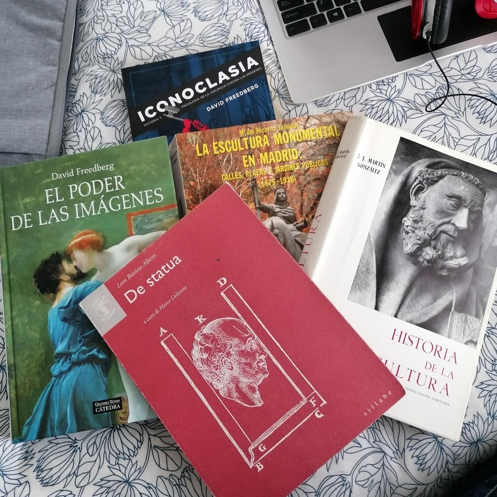 En plena vorágine de promoción del que es mi primer libro, con presentaciones y ocasiones varias para hablar de él, siempre he tenido en mente la posibilidad de compartir con todos, de manera abierta un elemento importante del mismo, que es la bibliografía y la reflexión que la acompaña, además, para animarme más a ello, me encontré un tuit de una compañera que comentaba la falta de bibliografía en libros de Historia del Arte que estaba consultado, ese hecho me ha decidido a finalmente realizar este artículo en el que comparto con todos esa reflexión y esas fuentes de las que me he nutrido para poder crear un texto con la doble vocación: didáctico y riguroso, que es Sobre el pedestal.