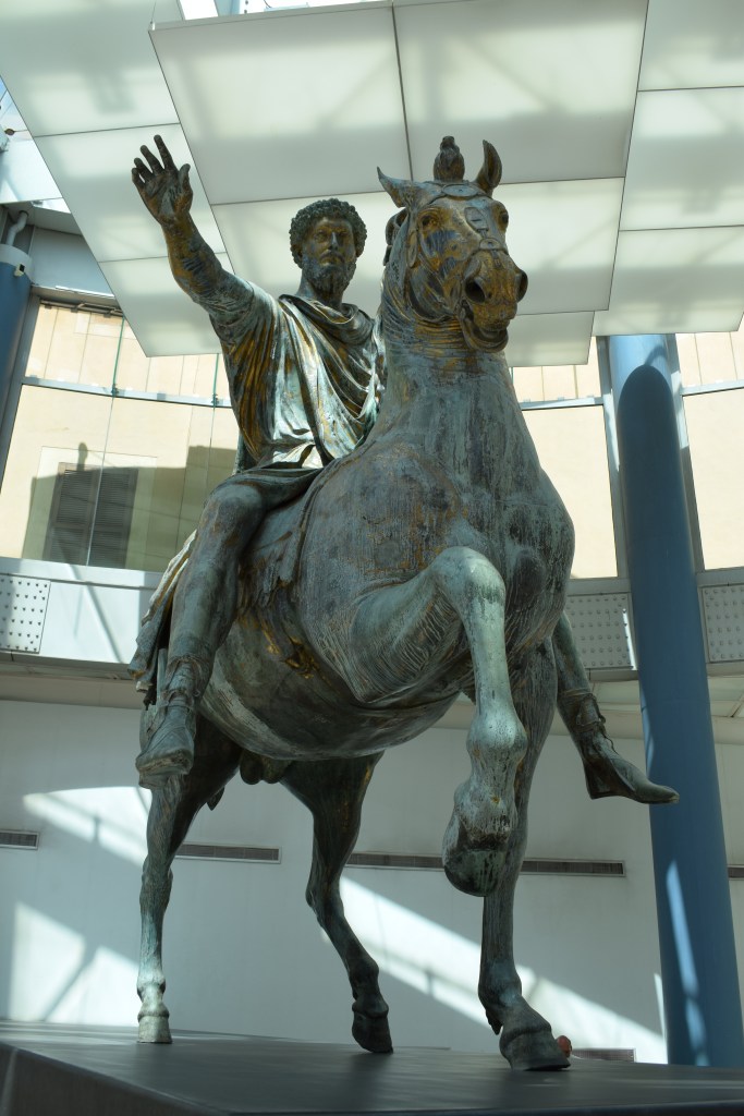 El retrato ecuestre fue una creación clásica, pero además había un ejemplo romano conservado importante, la estatua ecuestre de Marco Aurelio en bronce, que durante toda la Edad Media era visible en el exterior del palacio Lateranense de Roma, la residencia papal en aquella época. De la antigüedad tardía sería el monumento ecuestre conocido como Regisole o monumento al Rey Sol, erigido en la ciudad imperial de Ravenna pero trasladado en la Edad Media a Pavía, donde se situó en la plaza frente a la fachada del Duomo, hasta la destrucción por parte de los jacobinos en 1796, por entender que era un símbolo del Antigo Régimen y la monarquía.