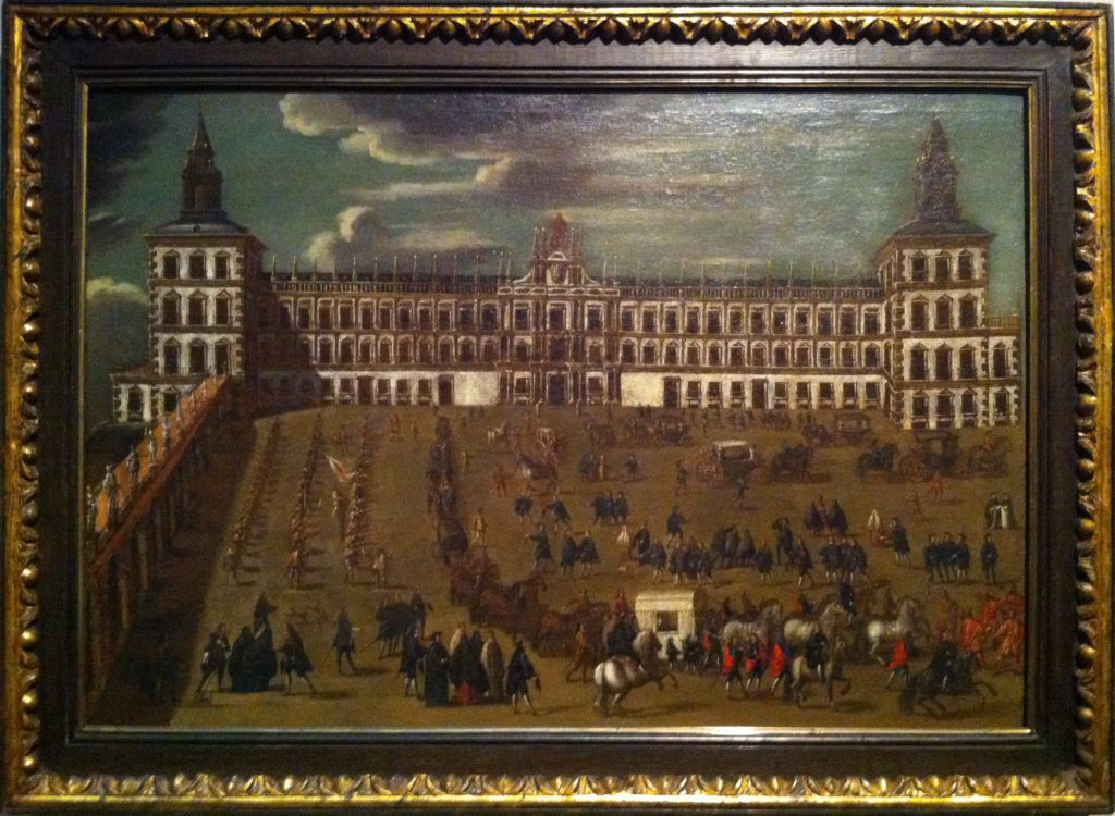 Se mantuvo en los jardines del Buen Retiro hasta 1675, año en que rompiendo esa costumbre que acabamos de mencionar se busca una localización pública, con un importante mensaje político. Ese año, la reina regente Mariana de Austria y su valido Fernando de Valenzuela, conocido como el “duende de palacio”, deciden trasladar la escultura a la fachada del Alcázar de Madrid. En los lentos trabajos de transformación del aspecto de la residencia regia en la Corte, se habían hecho cambios importantes en la regularización de la fachada y en la plaza de acceso por el sur al edificio. De esta manera, el Felipe IV se va a colocar coronando el frontón central de la fachada deseñada por Giovanni Battista Crescenzi y realizada por Juan Gómez de Mora. Es significativo el uso de la escultura, porque en ese momento Carlos II era todavía joven, su madre ejercía la regencia y era por ser viuda de Felipe IV por lo que tenía dicha potestad, en ese sentido la escultura venía a reforzar la legitimidad de la regente para hacerse cargo de los negocios de Estado. Para completar el programa, se encarga al taller sucesor de Tacca, dirigido por su hijo Ferdinando, una escultura ecuestre de Carlos II para colocar en el centro de la plaza de la Armería. El proyecto no llegó a completarse, pero es probable que la estatua ecuestre de Carlos II de pequeño tamaño que conserva el Museo del Prado y que realizó Giovanni Battista Foggini sea el modelo reducido de ese monumento.